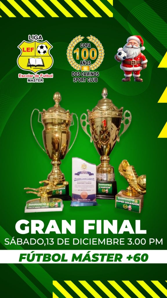 El Centenario del equipo Dos Caminos será celebrado en grande en la cancha del Club, Izcaragua, ubicado en la vía hacia Guarenas, estado Miranda, este próximo sábado 13 de diciembre a partir de las tres de la tarde, cuando el Centro Portugués enfrente a Asturipanas en la final de la Liga Escolar de Fútbol Master +60 años, según nos informó Ramón Páez en representación del club y de los organizadores de la competencia, en comunicación sostenida a través del hilo telefónico.