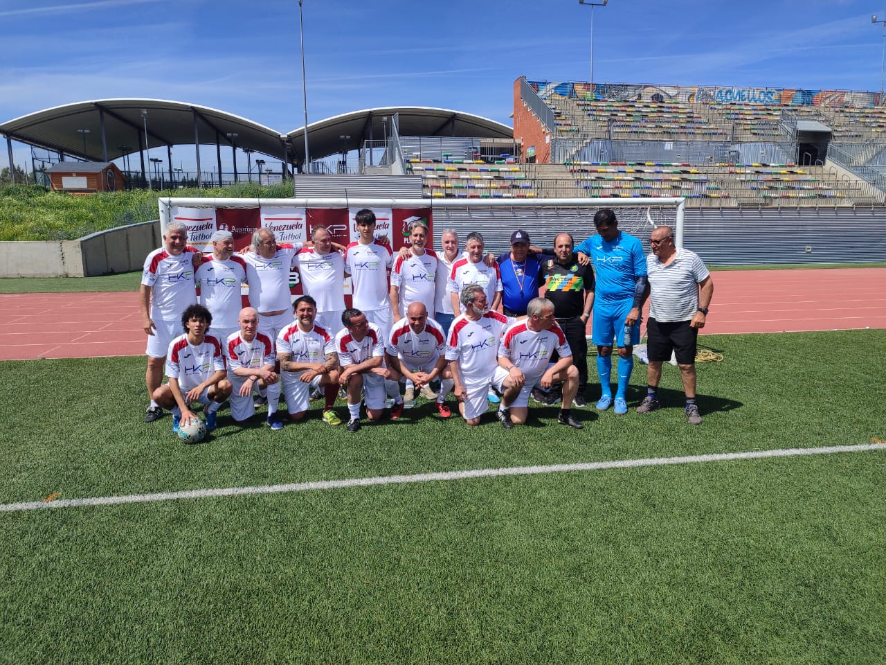 Después de un conversatorio que deleitó a todos los asistentes, tanto a los que conversaron como a los que escucharon, la fiesta siguió al día siguiente en el estupendo escenario del campo principal de fútbol del Polideportivo Municipal Paracuellos Jarama, en el que se «enfrentaron» dos equipos, el blanco y el vinotinto, conformados por los protagonistas y asistentes al evento de la noche anterior en el Restaurante «Aranjuez» de Madrid.