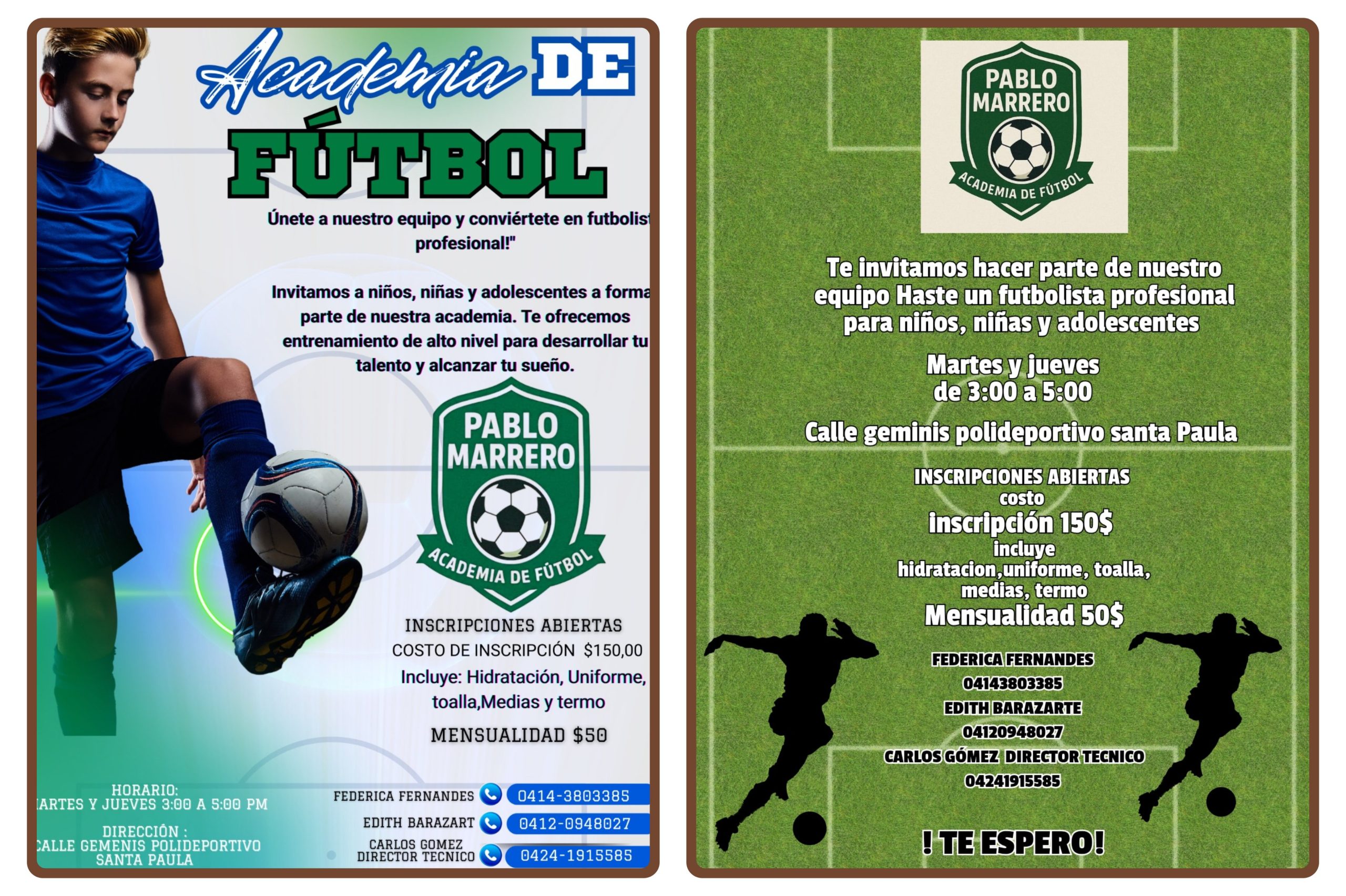 La Academia cuenta con el apoyo de los profesores Álvaro Flores, ex jugador de futbol profesional con el Deportivo Italia, y la profesora Edith Barazarte.
