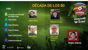 Como señalamos en líneas anteriores, en el Restaurant «Aranjuez», ubicado en la Calle Poeta Juan Maragall, 19 en la capital española, se realizará el conversatorio del 16, que tendrá como protagonistas a figuras emblemáticas de nuestro fútbol en los últimos 40 o 50 años, como son Camilo Temes Abralde, Manuel Filgueira Álvarez, Pedrito Pérez, Mario Pereira Francisco, José Clemente, Manuel González «Manolo La Polaca», Andoni Manchobas, Carlos Valero, Franco Rizzi, Félix Armando Golindano, Leopoldo «Polín» Páez Pumar, Asdrúbal Olivares, Andrés Rouga, Jesús “Dudú” Lorenzo, Mauricio Tronca, Chacho Martín, Giovanny Romero y Dany Vigas.